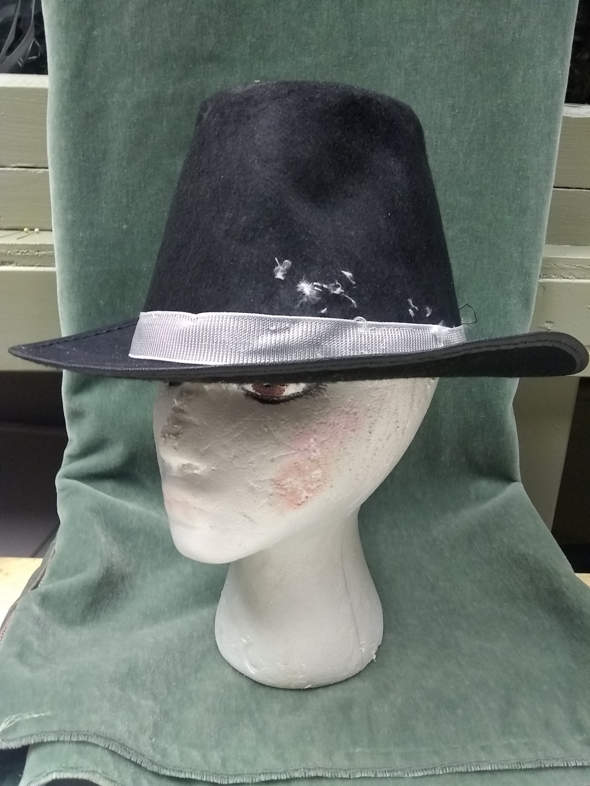 Black; Black permafel hat with silver trim brooch; Head Size-23; Hat Size-L