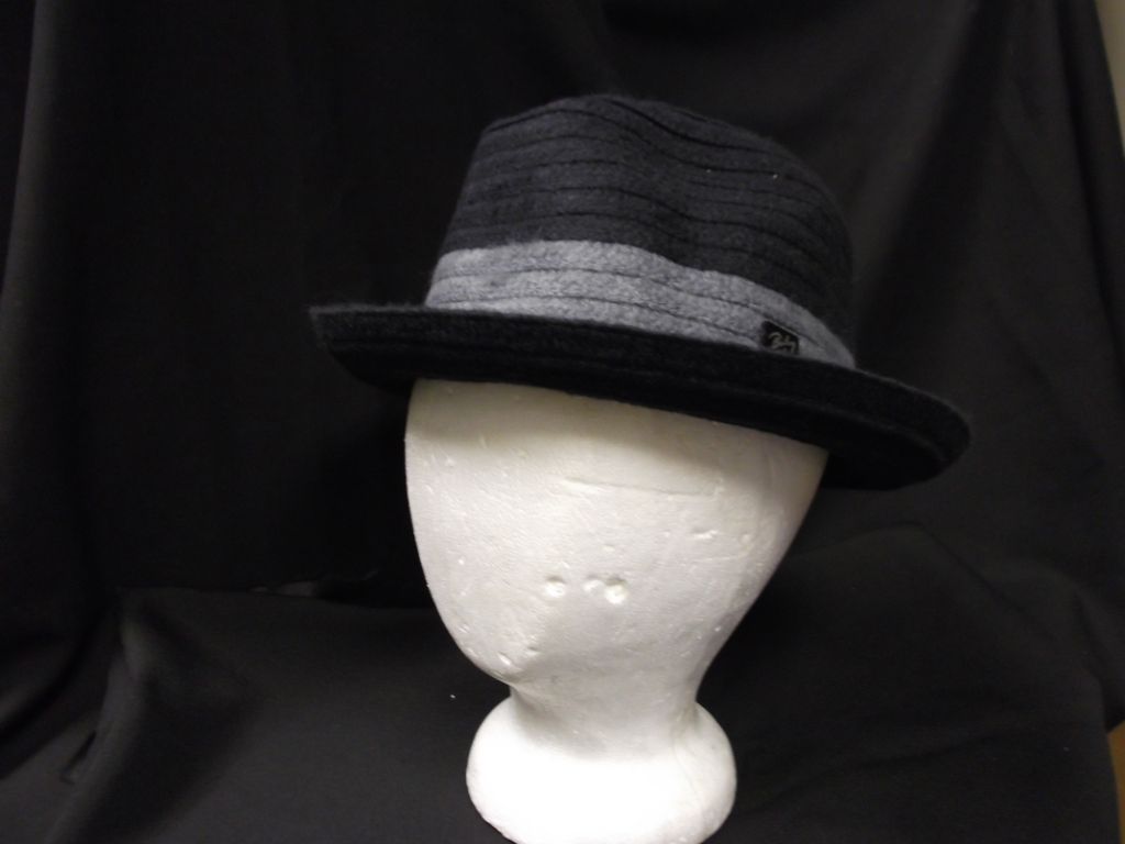 Black; Black with grey hat band knit fedora style.; Head Size-22.5; Hat Size-M