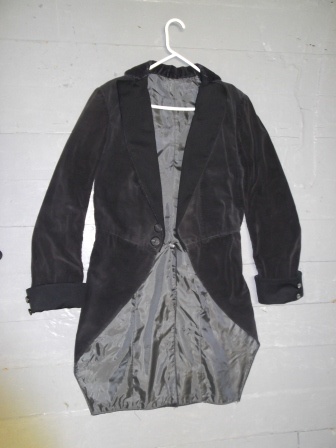 Corduroy Morning Coat has flat fabric lapels and cuffs.; Size-38; Coat Chest-40; Coat Waist-36; Coat Height-N/A; Coat Length-38; Pants Waist-N/A; Pants Length-N/A