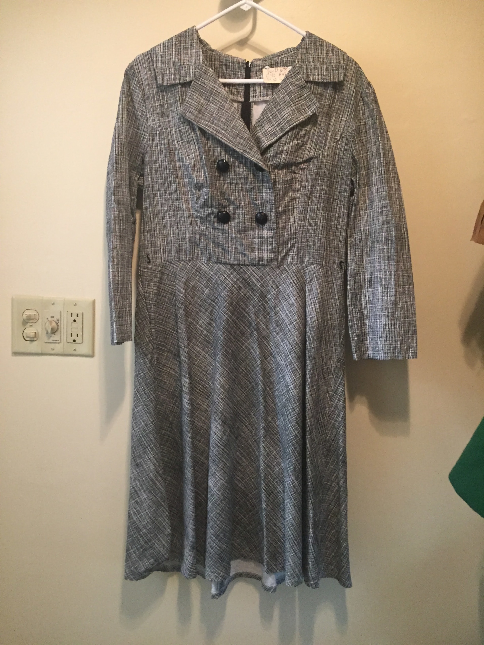 LS pointed collar, double placket, zippered; Chest-42; Waist-36; Hip-42; Length-42