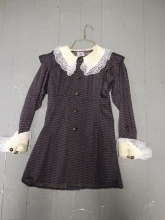 Patterned blue jacket has ivory, lace-edged collar and cuffs. Gold and blue buttons down front.; Chest-36; Jacket Waist-40Jacket Hips-N/A; Jacket Length-32; Knickers Waist-N/A; Knickers Hip-N/A; Knickers Length-N/A
