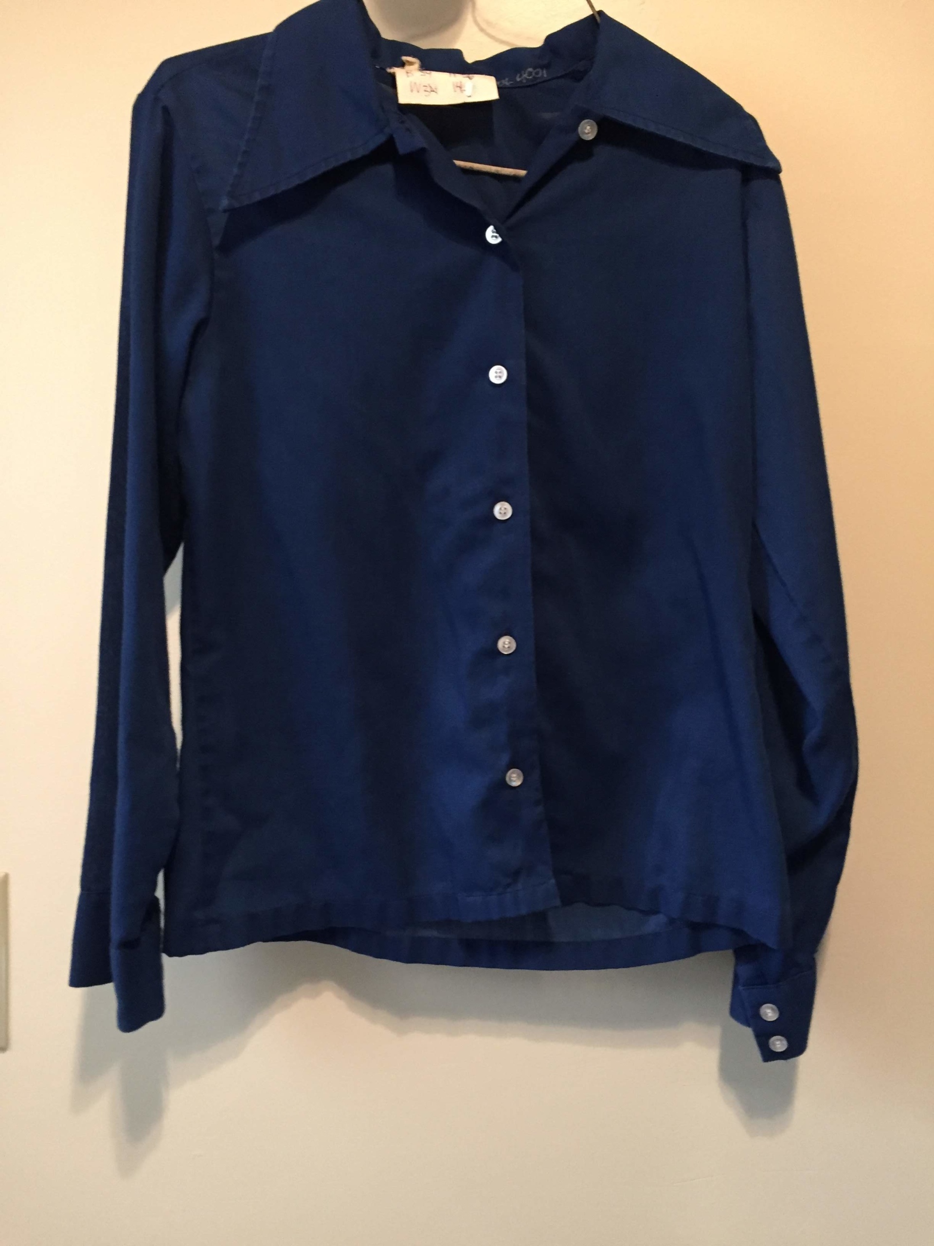 Buttoned, point collar; Chest-34; Waist-34; Hip -36