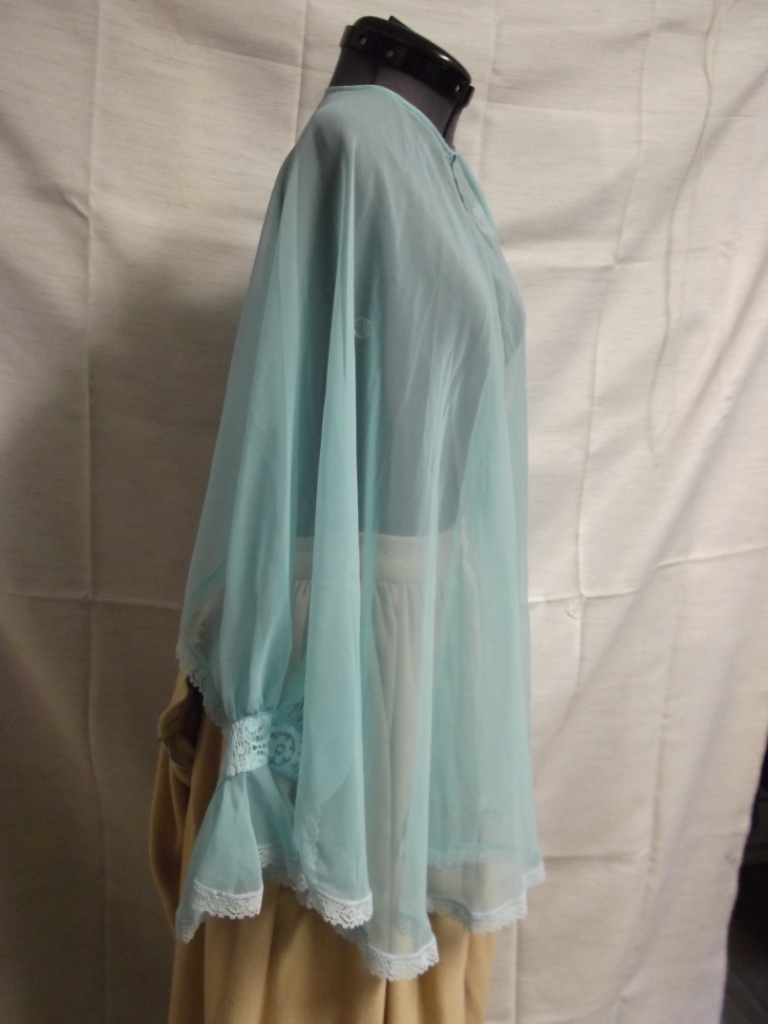 Poncho shawl with fake sleeves that button around the wrists. Lace-edged.; Waist-60; Length-13