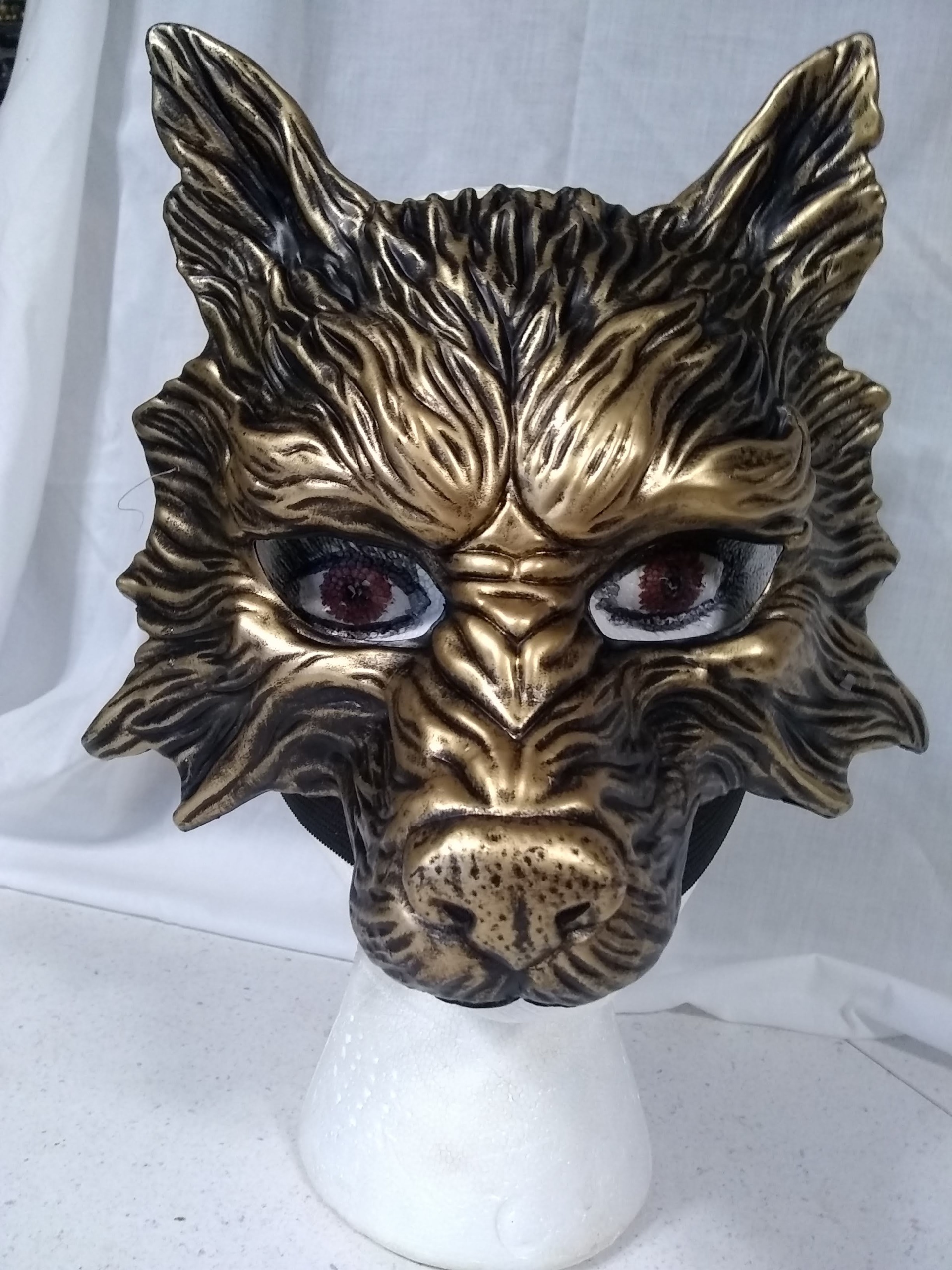 Brown/gold; Ornate wolf mask; Head Size-One Size Fits All; Hat Size-One Size Fits All
