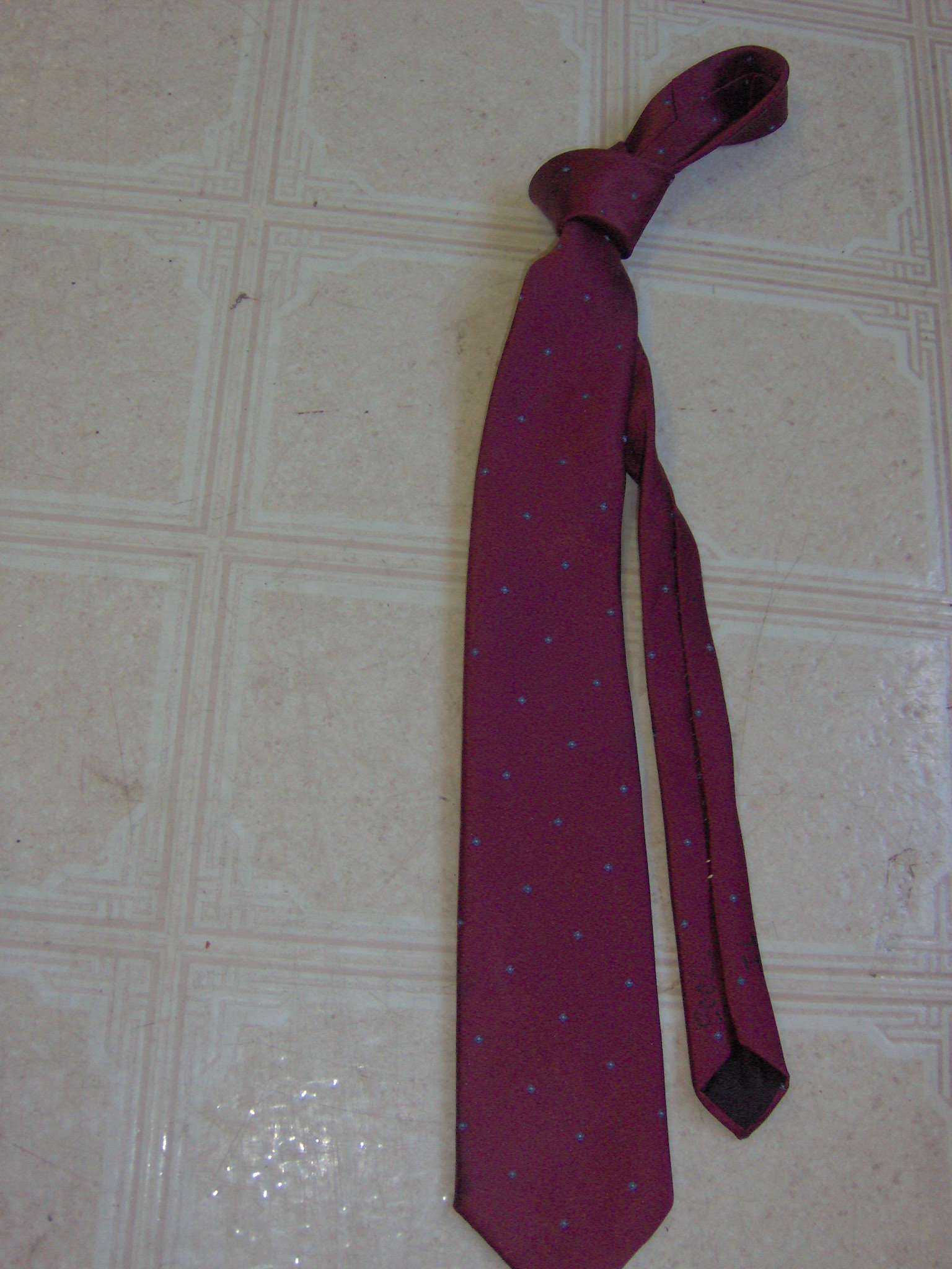 Burgundy and blue and white Necktie-TI 7003- solid with very small dots
