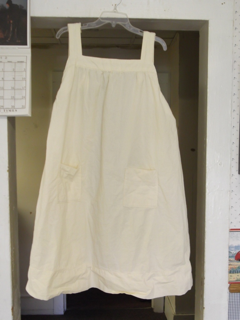 Muslin pinafores with 1 button back and 2 pockets; Chest-32; Hips-60; Length-50