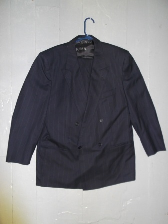 Jacket and pants; pinstripe; Size-44; Coat Chest-46Coat Waist-44; Coat Hips-46; Coat Length-31; Vest Chest-N/A; Vest Waist-N/A; Pants Waist-36; Pants Hip-48; Pants Length-30