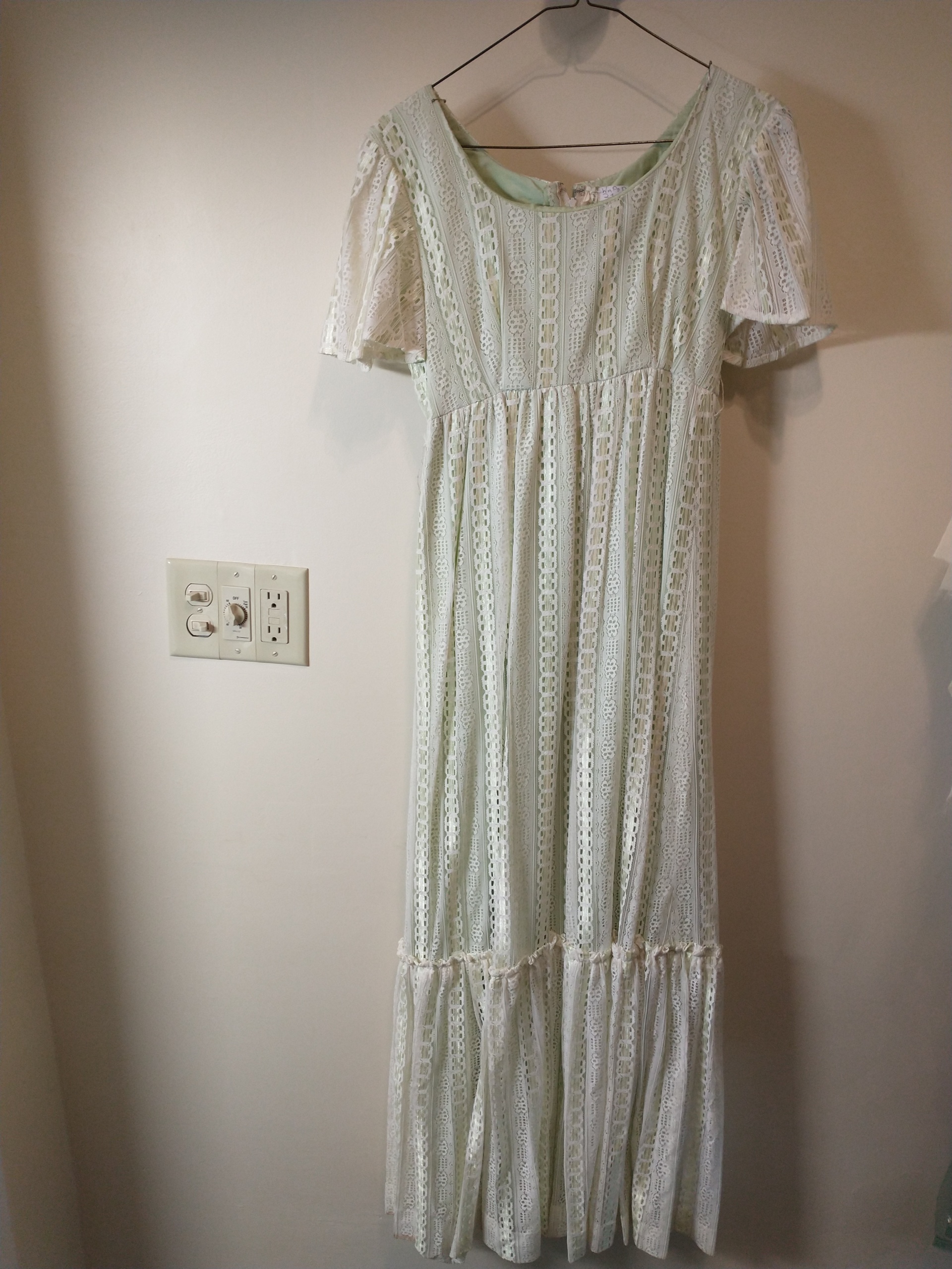 Empire waist dress with lace overlay.; Bust-30; Waist-26; Hip-42; Length-55; Sleeve Length-11