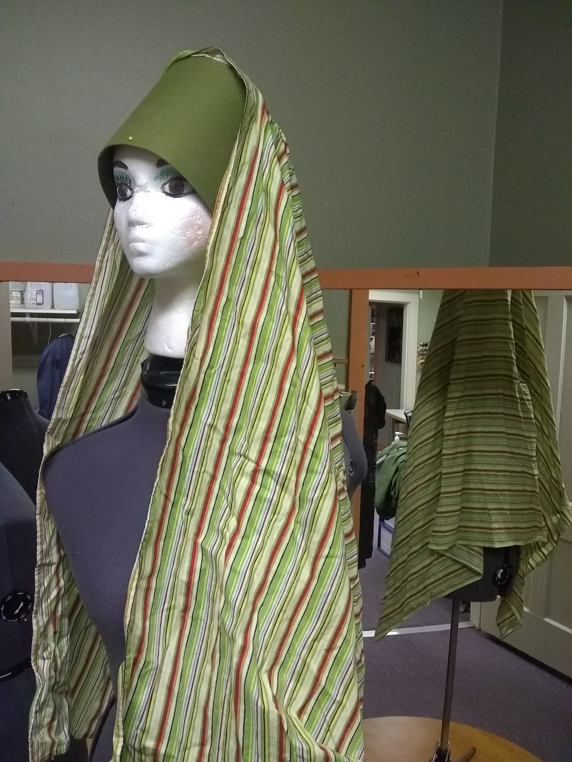Green; Green, red, and yellow pharisaical hat; Head Size-22; Hat Size-M