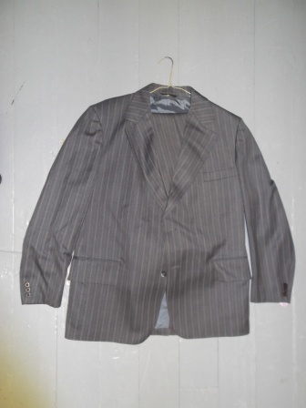 Striped. Jacket and pants.; Size-44; Coat Chest-46Coat Waist-44; Coat Hips-46; Coat Length-31; Vest Chest-N/A; Vest Waist-N/A; Pants Waist-38; Pants Hip-50; Pants Length-30