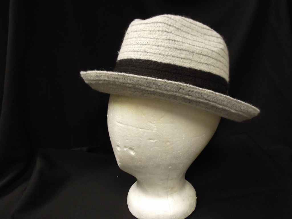 Grey; Grey with black knit hat band, fedora style.; Head Size-21; Hat Size-S