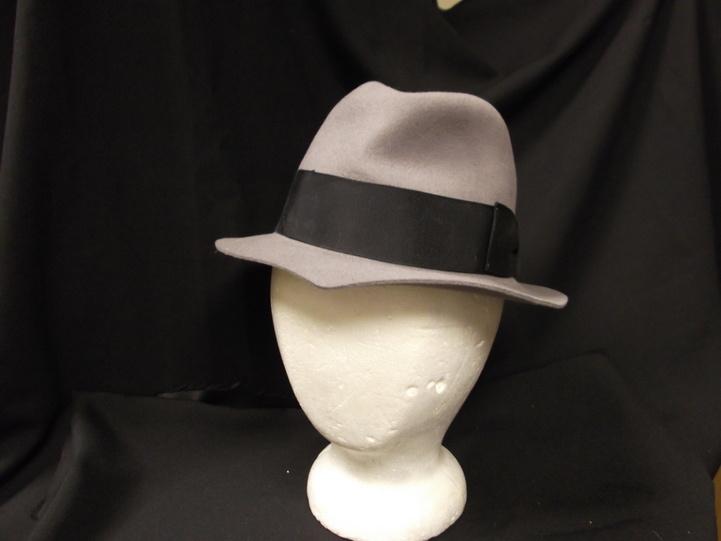 Grey; Grey wool felt with black hat band fedora style.; Head Size-21; Hat Size-S