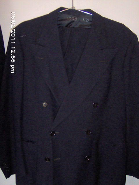 Jacket and pants; Size-44; Coat Chest-46Coat Waist-42; Coat Hips-44; Coat Length-32; Vest Chest-N/A; Vest Waist-N/A; Pants Waist-34; Pants Hip-48; Pants Length-31