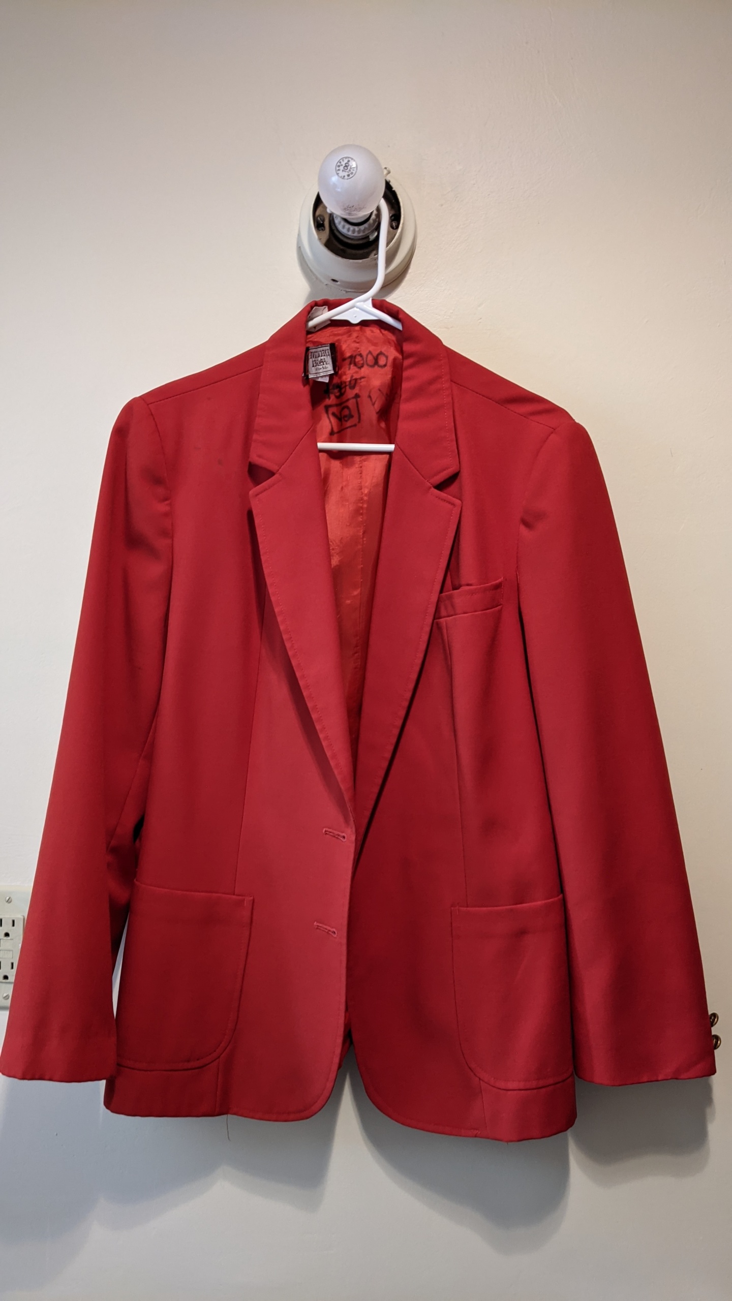 LS blazer with pointed collars and pockets; Chest-46; Waist-44; Hips-50; Length-28