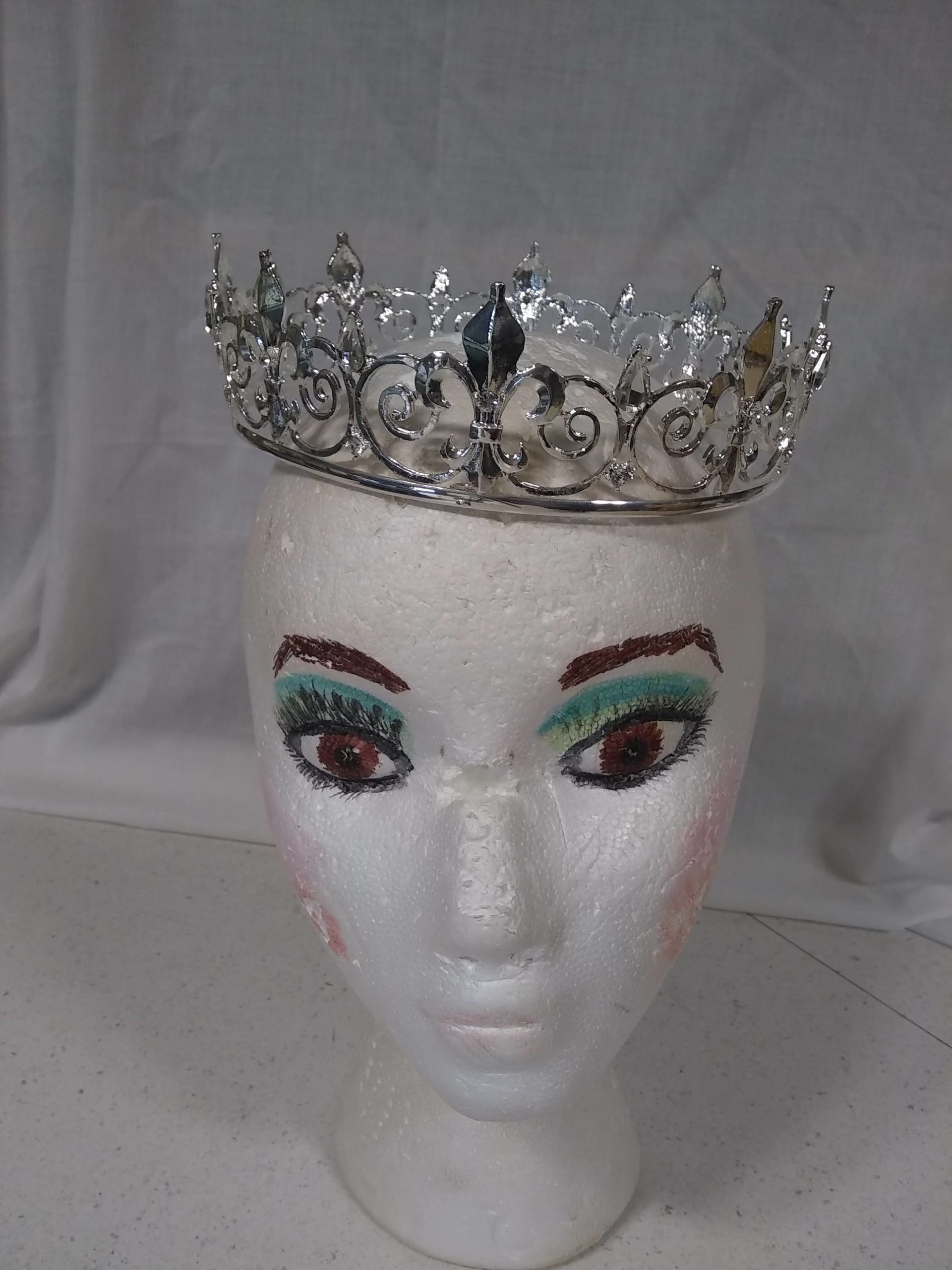 Silver; Elegant crown with fleur de lis and diamonds.; Head Size-One Size Fits All; Hat Size-One Size Fits All