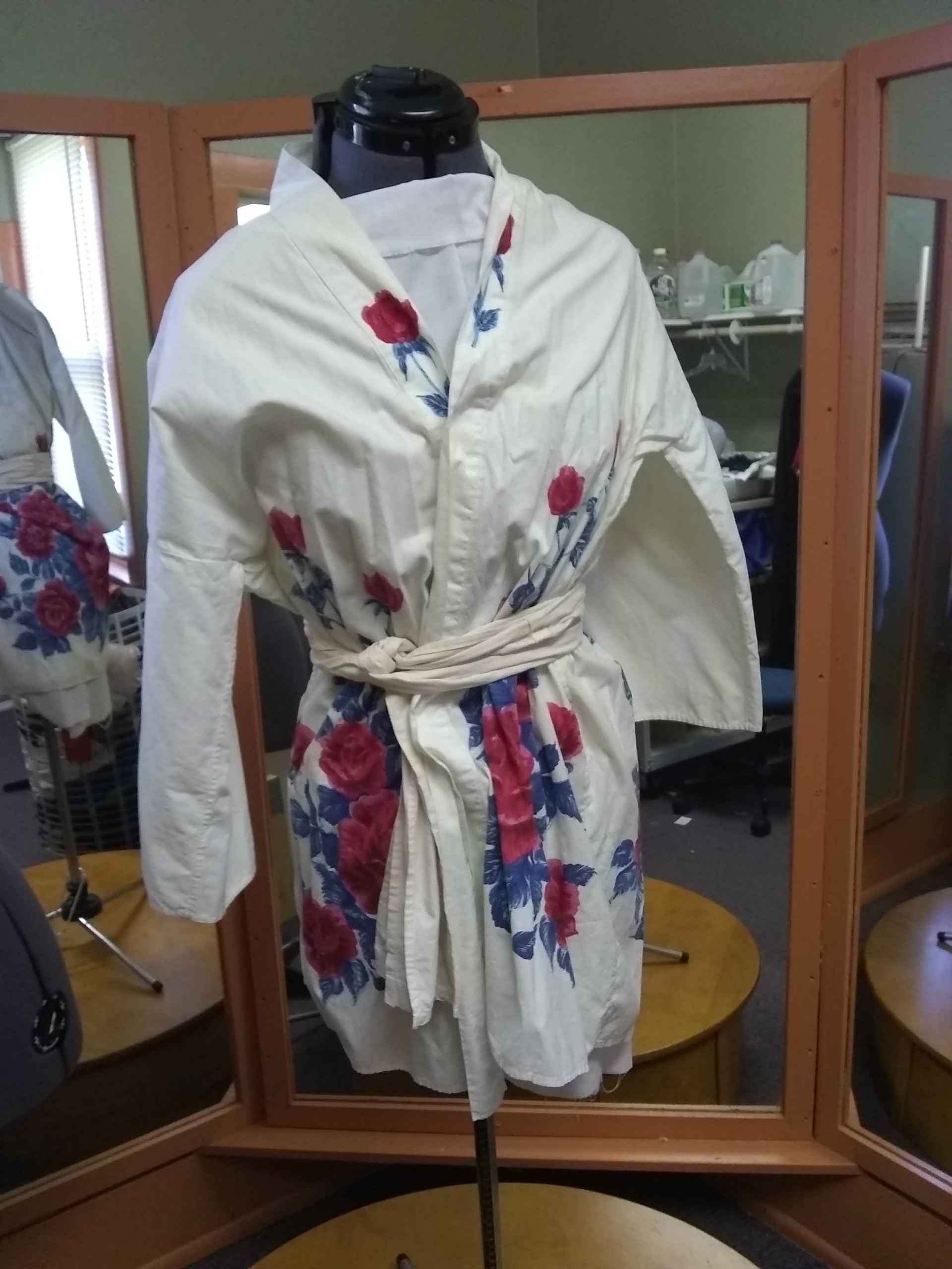 Women’s Oriental robe with blossoming flowers and short, wide sleeves.; Chest-42; Waist-42; Length-34
