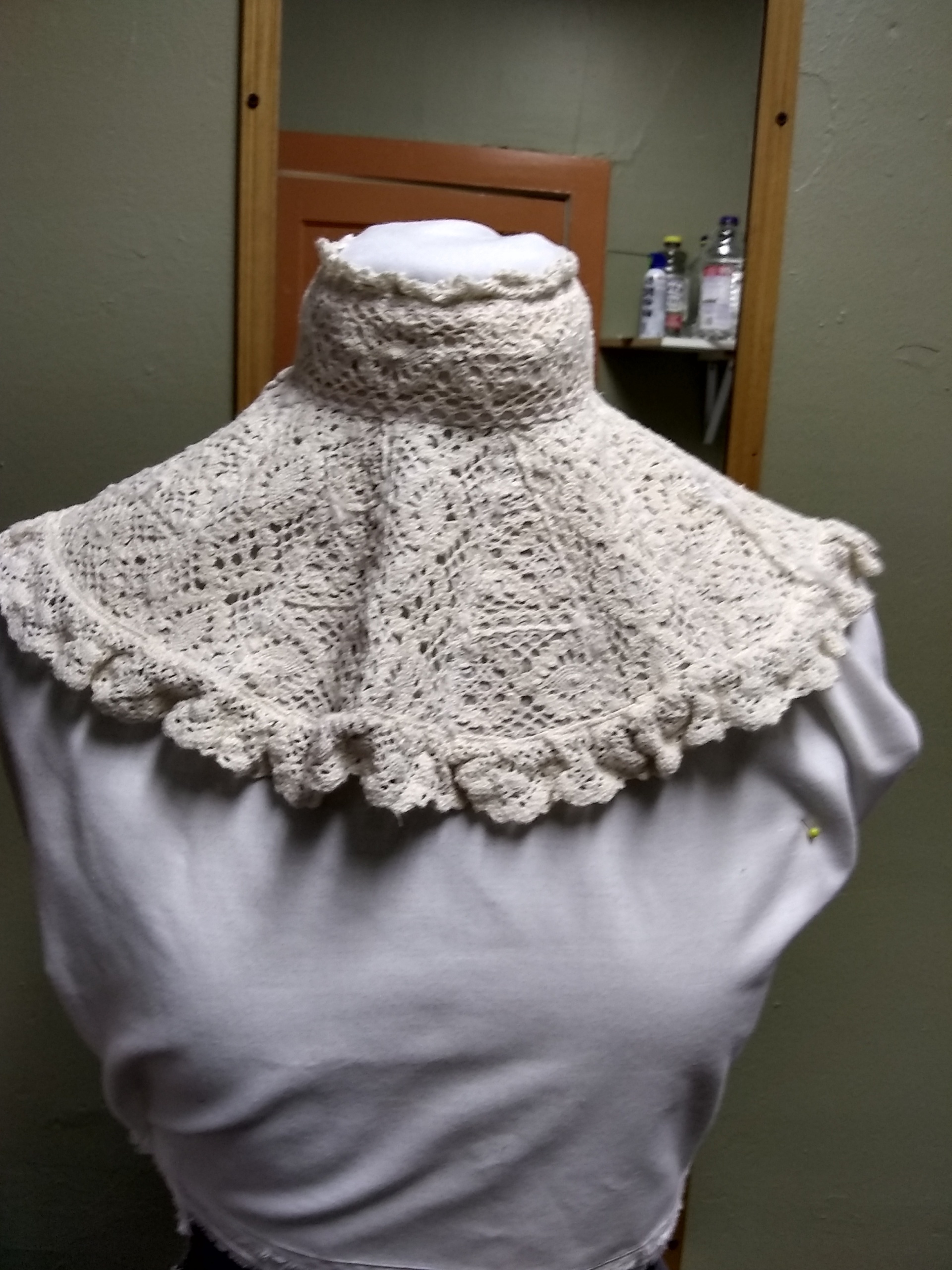 Full collar with embroidered overlay; hook and eye closure
