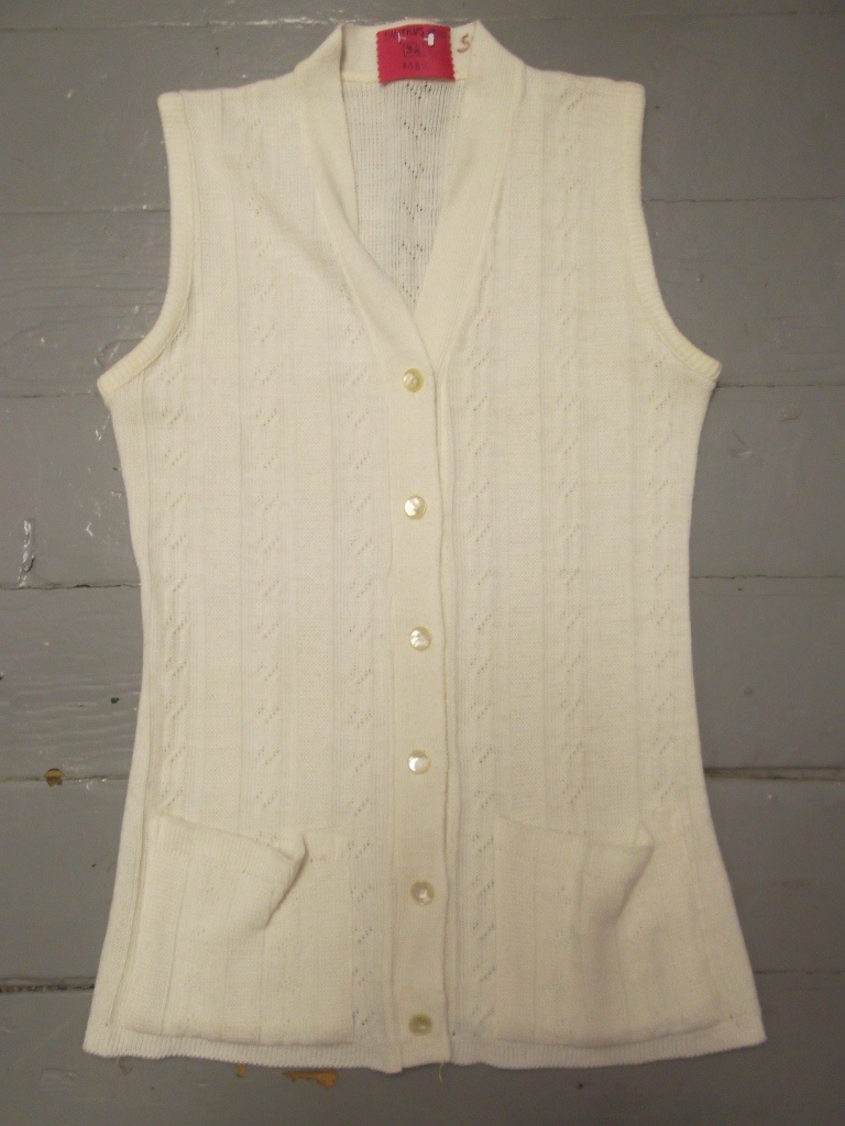 Women’s button-up sweater vest with pockets; knitted; Chest-38; Waist/Hips-36; Length-26
